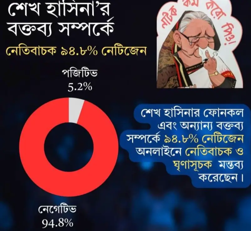 একটি সম্প্রতি প্রকাশিত গবেষণায় উঠে এসেছে যে, প্রধানমন্ত্রী শেখ হাসিনার সাম্প্রতিক ফোনকল ও অন্যান্য বক্তব্য নিয়ে অনলাইনে ৯৪.৮% নেতিবাচক প্রতিক্রিয়া